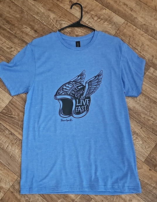 Short Sleeve Heather Royal Blue Winged Helmet T Shirt